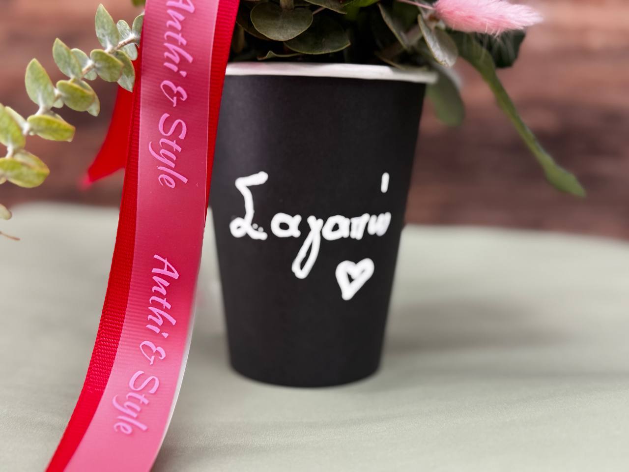 Αν θέλετε διαφορετική επιγραφή στο coffee cup (έως 5 λέξεις), παρακαλούμε επικοινωνήστε μαζί μας στο 210 8610055 ή στο anthistyle@gmail.com, αναφέροντας τον αριθμό της παραγγελίας σας.