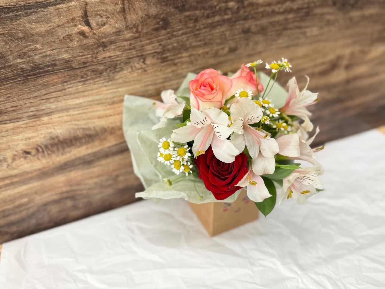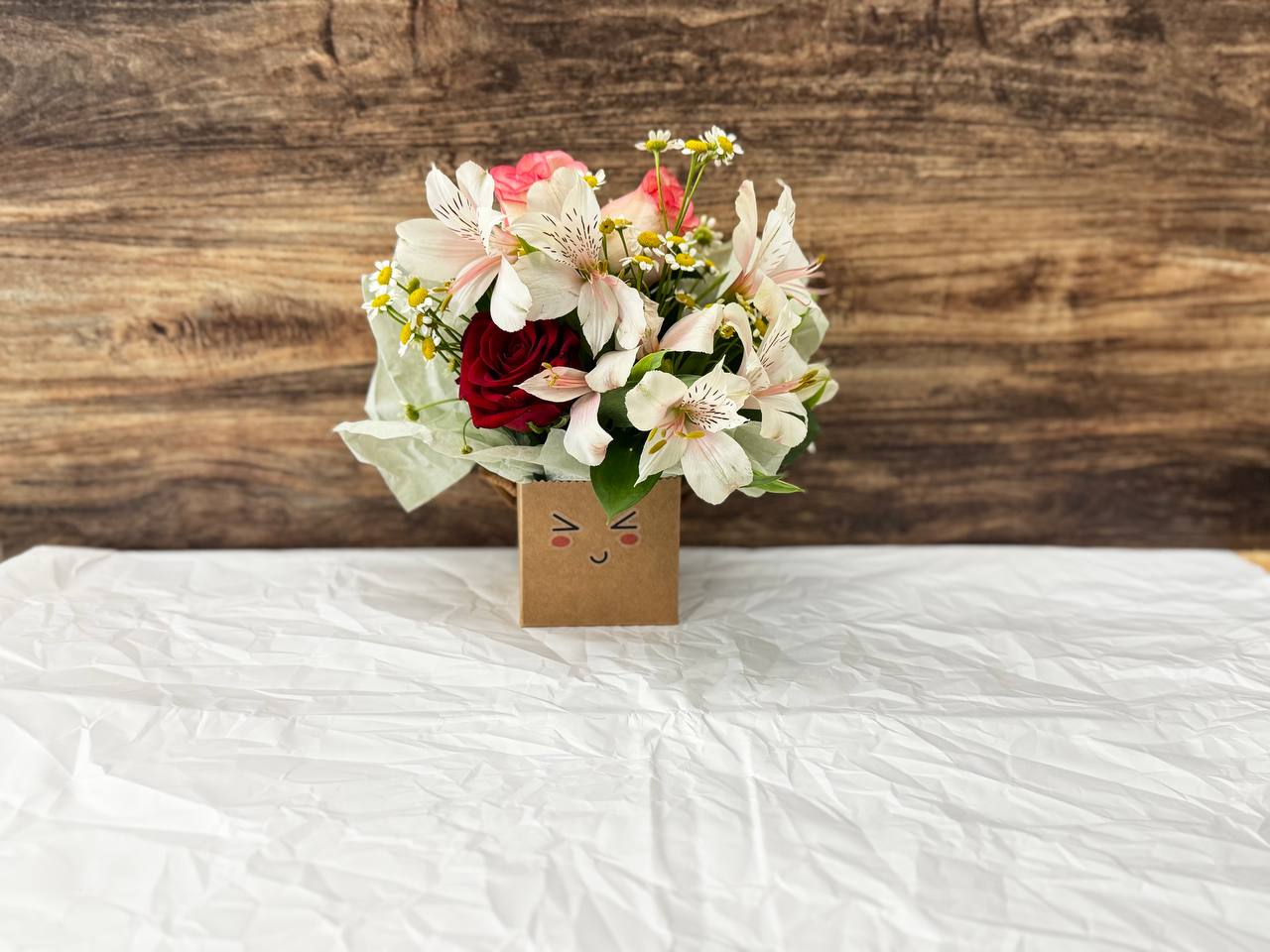 Τα λουλούδια στο κουτί θα συλλεχθούν ανάλογα με τη διαθεσιμότητα και το χρωματικό συνδυασμό κοντά στη φωτογραφία