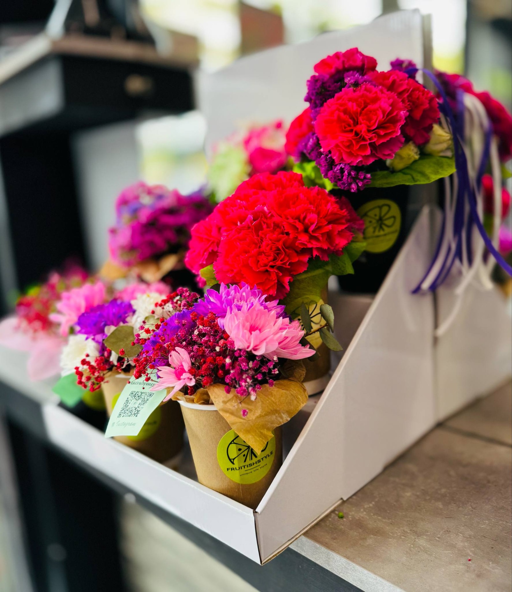Μια μικρή βιτρίνα με Cup-bouquet χωράει παντού — ακόμα και σε πολύ περιορισμένο χώρο!